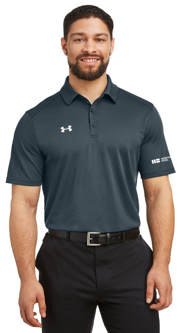 Under Armour Gray Polo w/ WS logo embroidered on left sleeve in white. 100% polyester; Material wicks sweat and dries quickly; Textured fabric that's soft, light and breathable.