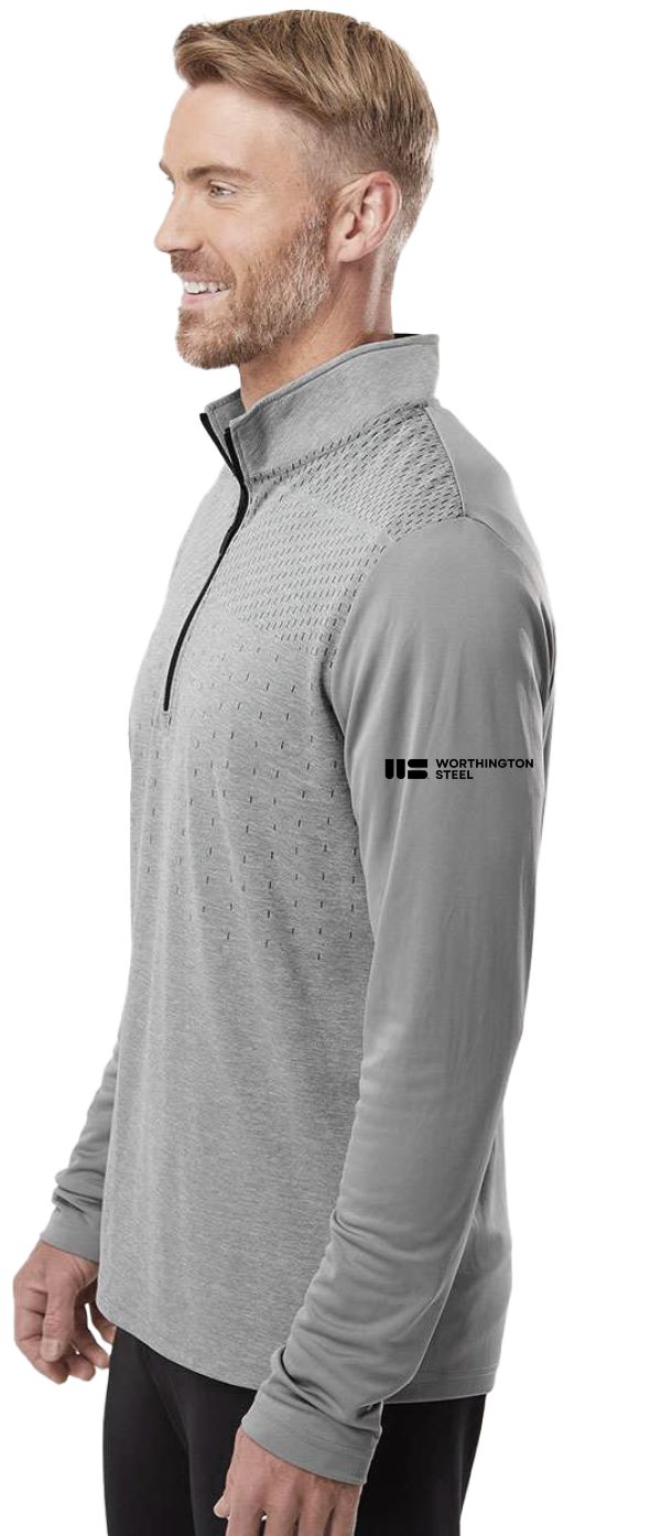 Adidas Gray 1/4 Zip Pullover w/ black embroidered WS logo on left sleeve; 6.1 oz. 100% recycled polyester; Moisture-management properties; Self-mock collar; Bottom hem and cuffs; Contrast Adidas logo on right sleeve