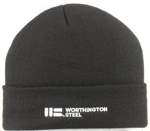 Black Knit Cap w/ white WS embroidered logo; 100% acrylic pro rib Tompkin knit cap with cuff